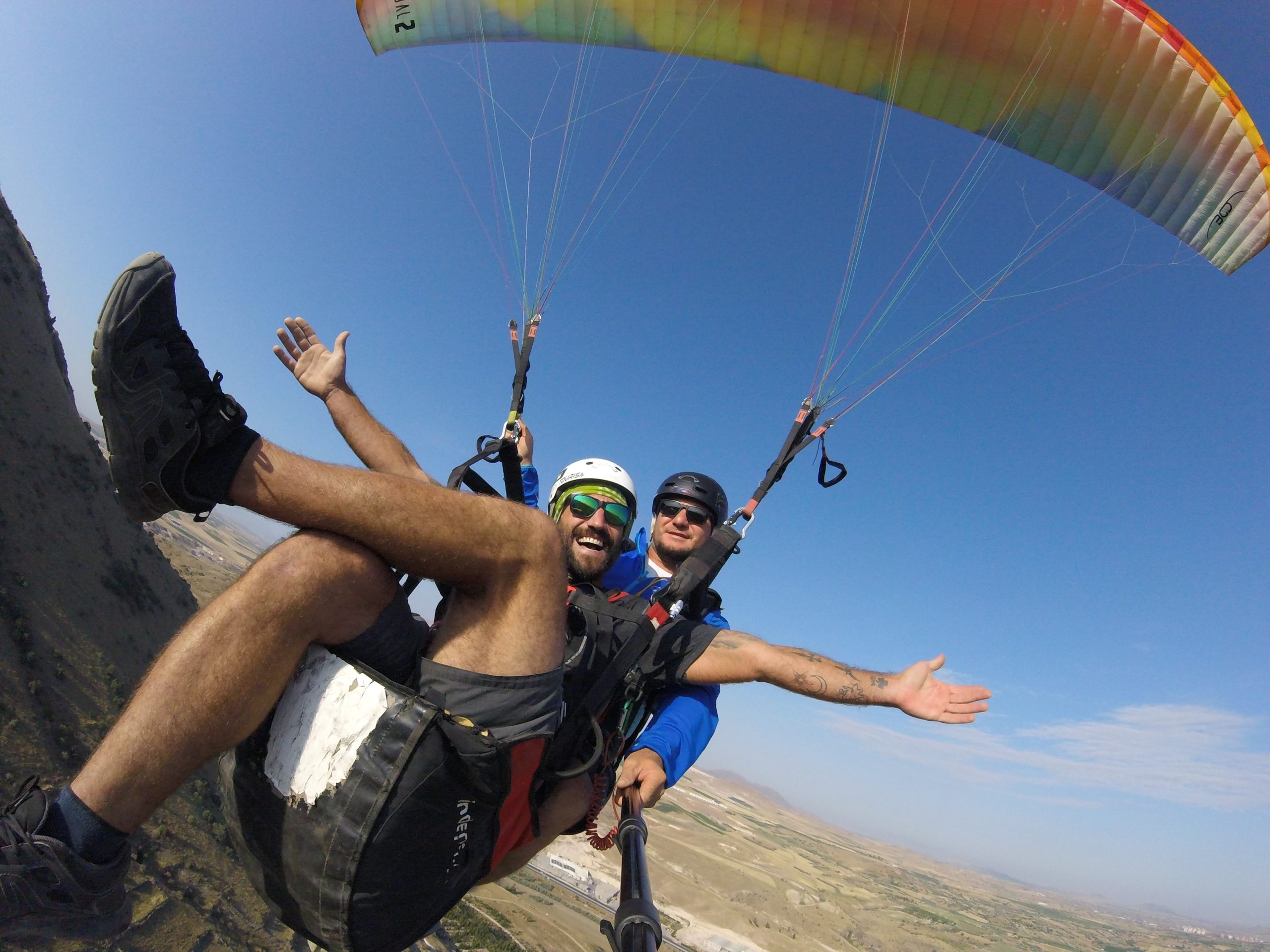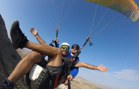 In our paragliding takeoff area in Cappadocia, the terrain is somewhat rocky. Therefore, we don’t want your feet to get hurt during the takeoff run. We kindly ask you to bring sports shoes that can protect your ankles and sunglasses to shield your eyes from the sun when coming for paragliding flight. Please refrain from wearing flip-flops or high heels for the paragliding flight.
